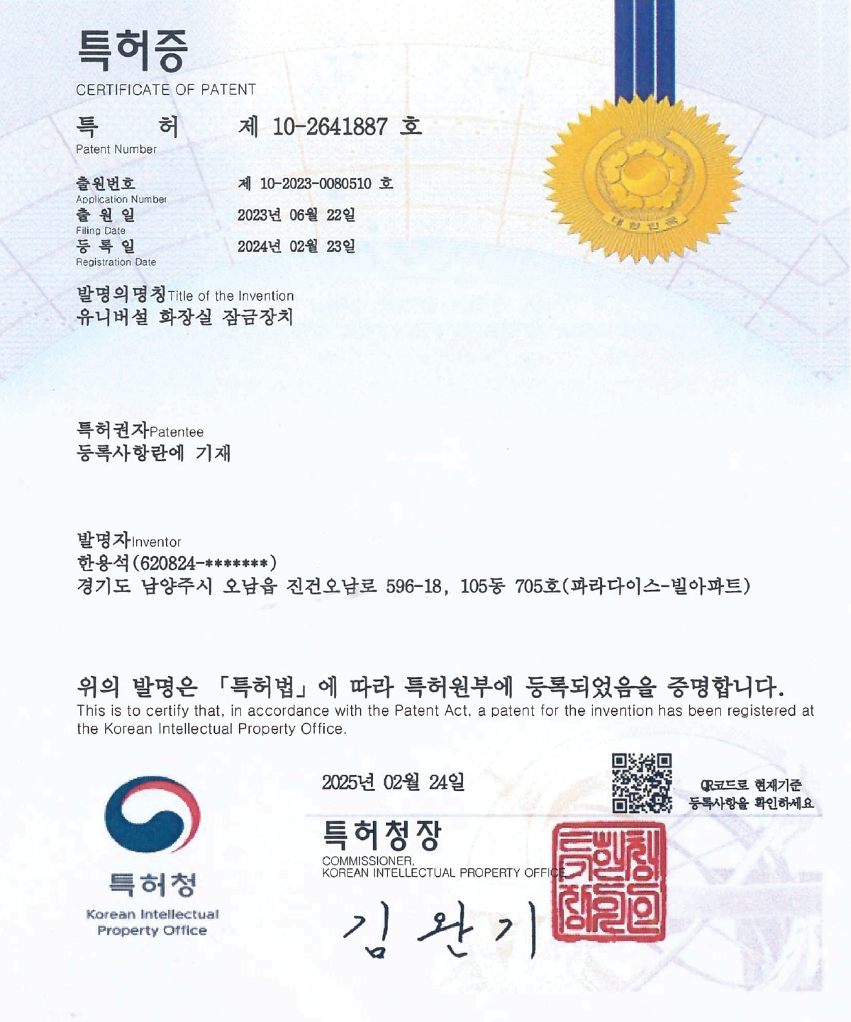 특허증 유니버설 유락 특허등록 (제10-2641887호) 페이지 정보 댓글 0건 조회 1회 작성일 2026-04-20 19:56 본문 목록 댓글목록 댓글목록 등록된 댓글이 없습니다.